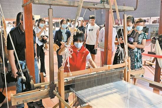 志愿者展示织布机的应用