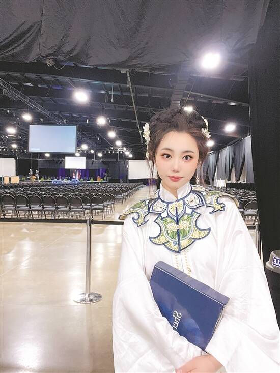 “各个朝代的汉服都非常的美丽,我那天所穿的是明制汉服,是基于毕业外袍样式以及我自己的外貌作出的选择。”张嘉诺表示,之所以选择汉服,是因为自己生长在西安这个充满浓厚文化底蕴的城市, 它给予了自己对中国文化的兴趣与自信。“由此,我决定穿着中国传统汉服参加自己的毕业典礼。” 张嘉诺说。