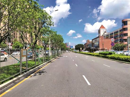 在南山区,深大附属外国语学校与旁边阅山境小区共用开口,晚高峰与放学时间重合,学校师生与小区机动车交织频繁。上半年以来,该路口获重新审批改建,有关部门对学校、阅山境小区开口进行了拓宽,并加装护栏分隔人车。针对校外慢行道窄小等问题,交通部门还清除了学校围墙根处植草,扩大慢行空间,同时将双柱式大型标志改为双圆形标志附着于路灯,进一步节省道路空间。