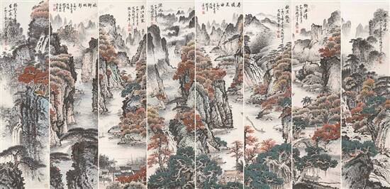 关山月作品《山水八屏》
