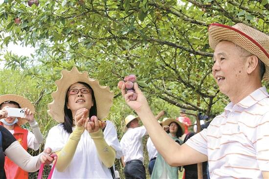 游客在奈李园内体验采摘乐趣