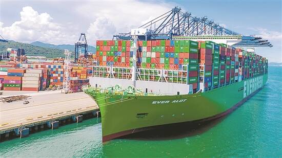 羊城晚报讯 记者林园报道:近日,首艘中国“智”造全球最大集装箱船、“长益”轮停靠在盐田港。“长益”轮是中国船舶集团旗下沪东中华为长荣海运建造的装载量24004标箱超大型集装箱船。这艘“海上巨无霸”首航靠泊盐田,并以其作为在中国最后的挂靠港,与盐田国际突出的深水良港优势和被业界高度认可的操作能力有关。 作为全球最大集装箱巨轮,“长益”轮由沪东中华自主设计,拥有完全自主知识产权,自6月在上海启航后,随即与另外6艘超大型集装箱船一同服务于挂靠盐田港的远东至欧洲航线。
