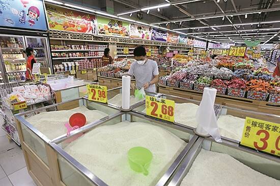 在金凤凰工业区某商场,记者注意到,商场内部喇叭循环播放疫情防控相关知识,提醒疫情防控注意事项,现场群众均正确佩戴口罩,有序购买生活物资。商场内,米面粮油、瓜果蔬菜、鸡鸭鱼肉应有尽有,各类商品明码标价。采购生活用品的市民张女士告诉记者:“大米、青菜还有肉之类生活物资都挺丰富的,价格都跟平时一样,没什么变化。” 据商场负责人介绍,目前,商场禽肉、蔬菜类实行每日进货销售,确保商品品质。同时,储备有水果500斤、鸡蛋1200斤、米2吨、油400桶,各类生活物资供应充足。