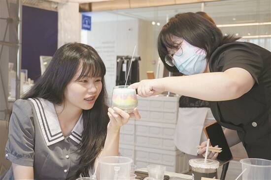 恰逢暑假,学生、情侣、家庭主妇等不同群体走进手工体验空间,动手制作陶器、饰品、口红等各类小物件,无论是自留用作纪念或是送给他人都具有特别的意义。