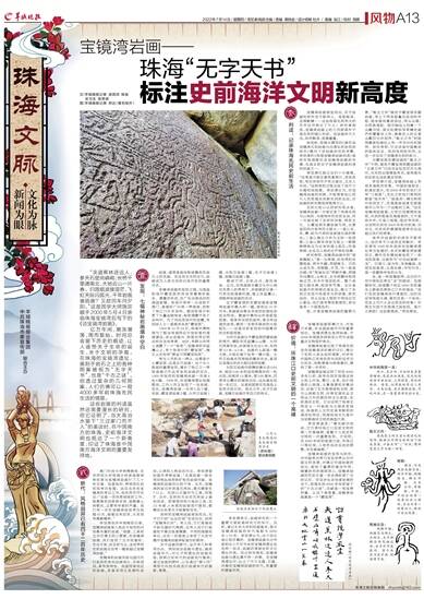 宝镜湾岩画的发现与研究,对中国考古界乃至史学界认识中国文明多源,对确立中国岩画的地位,起到了重要的推动作用。随着研究的继续深入,宝镜湾岩画的历史价值一定会得到更广泛的认可。在经济社会快速发展的当下,珠海先民4000多年前留下的“千古之谜”,无疑是一笔宝贵财富。从这个角度看,宝镜湾岩画真是一个“藏宝洞”。
