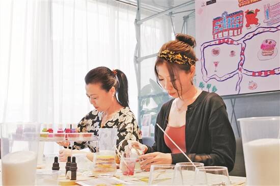 恰逢暑假,学生、情侣、家庭主妇等不同群体走进手工体验空间,动手制作陶器、饰品、口红等各类小物件,无论是自留用作纪念或是送给他人都具有特别的意义。