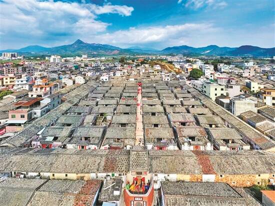 从游客中心一旁的小山上望去,可将古围村罗岗围的壮观全景尽收眼底。罗岗围呈正方形布局,长宽均为99米,设有东、西、南、北4座门楼,由108间房屋相接而成。罗岗围坐北朝南,正门修建了一座瓮城用于防御海匪。走进围屋之中,巷道胡同纵横交错,将围村中数十座屋,上百间房整齐相连。记者看到,至今仍有一些村民居住在古朴的围屋中。“之前就听说过范和古村的美名,这次去海边途中路过稔山,就过来看看,这里的风景人文很有特色,值得再来。”游客李小姐赞赏地说。