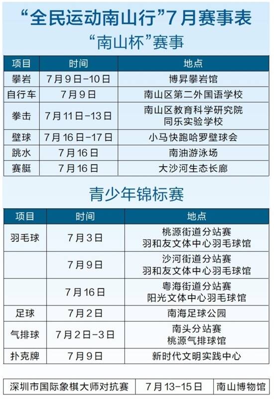 据悉,南山区年均举办体育活动3000余场次,国际篮联篮球世界杯、WTA世界女子网球总决赛、南山半程马拉松、粤港澳大湾区系列赛等高水平赛事精彩纷呈,“南山杯”系列赛、社区运动会等群众赛事高潮迭起。