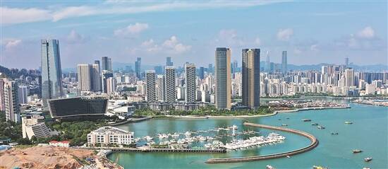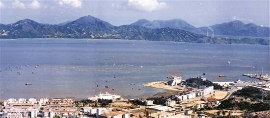 1985年的蛇口。陈宗浩在照片里清楚地标出了海上世界、南海酒店、蛇口码头的位置。2021年的蛇口:海上世界高楼林立,南海酒店在画面左侧,明华轮已经被高楼包围