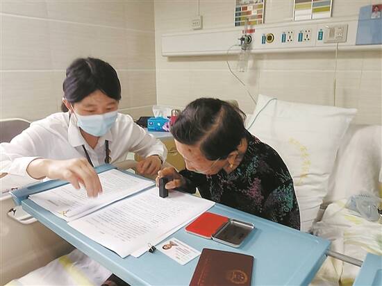 公证员在病床前为老人家办理委托公证 受访者供图