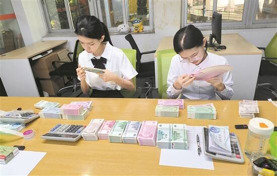 兼具速度与观赏性的背后是每天早中晚都要重复进行的枯燥乏味的知识与技能训练。指导教师杨丽目睹了学生们早期对账的缓慢和纰漏百出“塌扇”到如今娴熟的操作。从最初的点钞不时会被划伤手指到如今的一气呵成,离不开学生们夜以继日的训练。