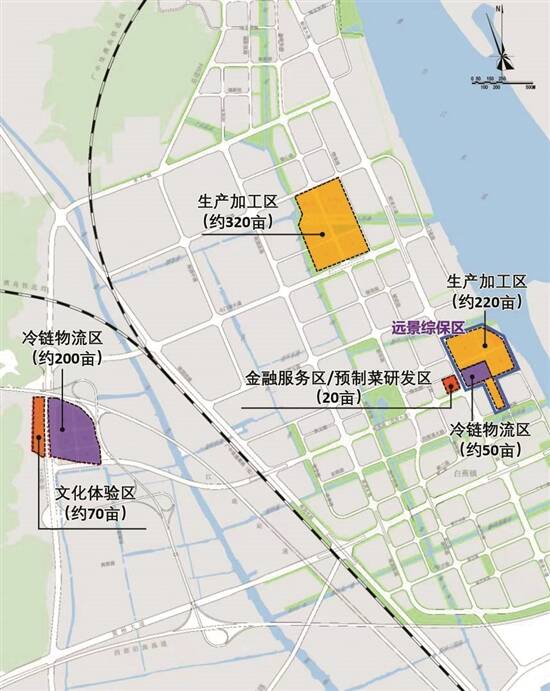 一期项目:开发范围面积(仅含产业类用地)约270亩,总投资近20亿元。目前已建成水产品深加工厂房30万平方米,近21万吨冷库容量,已有强竞供应链、诚丰优品产业园、集元水产等10家预制菜企业落户,拥有生产加工区、冷链物流区两大功能区;