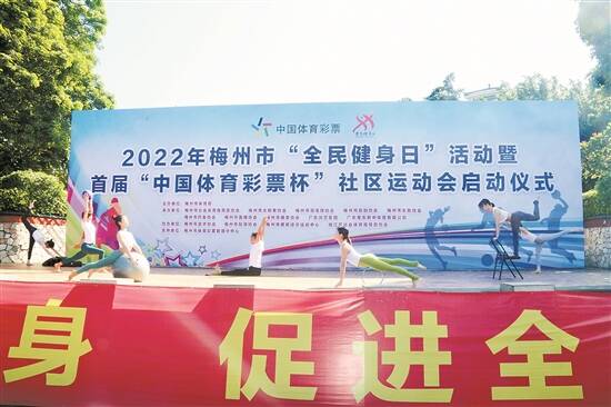 羊城晚报讯 今年8月8日是我国第14个“全民健身日”。为深入实施《广东省全民健身实施计划(2021-2025年)》,当日上午,梅州市体育局在梅州客天下举办2022年梅州市“全民健身日”活动暨首届“中国体育彩票杯”社区运动会启动仪式。