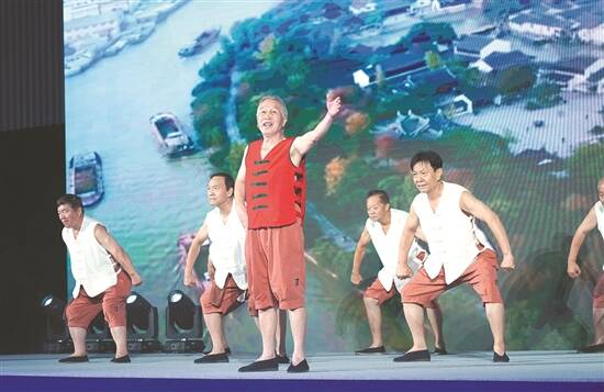 演员在运河文化节开幕式上表演《运河船工号子》 新华社记者 陈钟昊 摄