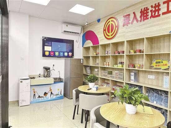 据了解,新建成的综合服务中心不仅配备有空调、电视、电热水壶等电器设备,还提供有矿泉水、充电器、雨衣、医用应急箱等物资,可以为快递员、外卖配送员、网约车司机、货车司机等新就业形态劳动者群体提供就餐、饮水、休息等温馨服务。