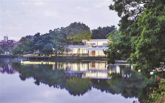 清晨,在广州越秀区的东山湖公园,鸟鸣蝉叫唤醒新的一天,悠悠乐曲声中,晨起锻炼的人群渐次热闹。沿着湖边慢走,穿过木桥,踏过石板路,透过葱葱郁郁的古树,你能看到一座两层高的白色建筑物隐藏于岛中央的浓荫里。