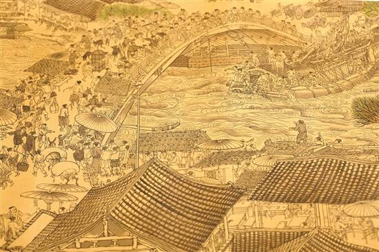 北宋张择端所作《清明上河图》,描绘了宋代汴水上木结构虹桥巧妙的建造与行人的熙攘景况。这种“以巨木虚架”的“无柱虹桥”在学术上称为木拱桥,据《宋会要》《宋史》载,这解决了此前汴河上舟船频繁与桥墩相撞的问题,成了近千年来中国名桥的典范。