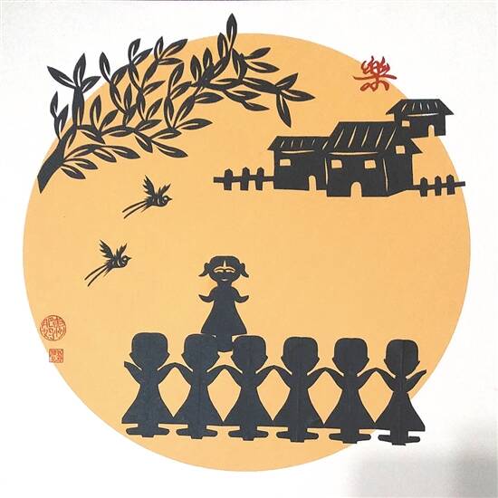 刘雅晶独创以剪纸符号教学,通过剪纸符号组合可以形成一幅完整的作品