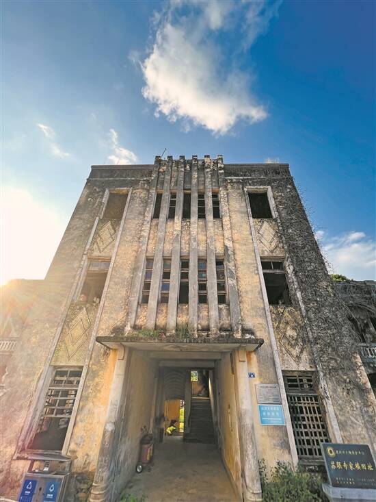 记者走访看到,专家楼为中间宽、两边狭的矩形对称布局,三层高的主楼两侧连接着两层高的翼楼,从主楼正门望进去,可以看到后端建有楼梯,通往主翼楼各楼层;部分墙体外皮剥落,裸露出红砖水泥混合结构。从正面看去,左右翼楼除了外侧一间外,与主楼相接部分的三间两侧均建成骑楼风格。