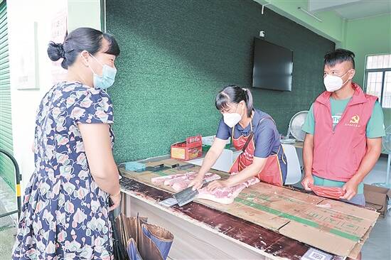 马伟伟告诉笔者:“当时联系了莲洲市场监督管理所,让他们对接供销商和爱心企业,把合格的肉类、蛋品、食用油运到村里来,爱心企业也捐赠了一些蔬菜。我们再逐一把物资打包分给村民。”生活物资得到及时保障,在家门口又能买到新鲜便宜的猪肉,村民倍感暖心,纷纷竖起大拇指称赞:“现在有了这个临时菜市场,大家都有肉吃,感觉很踏实。”