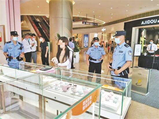 据南海公安通报,行动期间,南海桂城某商场一珠宝店店员报警,称一名女子以试戴戒指为由,趁其不备时抢走了店内的戒指。接报后,南海公安分局桂城派出所雷岗社区民警中队立即启动1、3、5分钟防控圈处置机制,部署警力及群防群治力量到场处置,并在周边展开巡逻,注意发现可疑人物。半个小时后,南海警方行动组警辅人员在该广场负三楼发现嫌疑人踪迹,当场将其控制,并现场起获一枚被其抢夺的戒指。