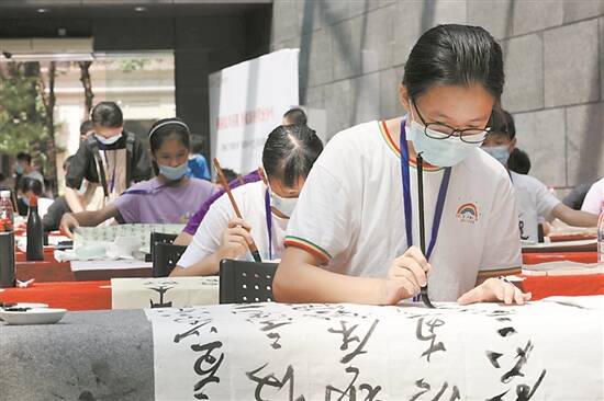8月21日,第四届“东莞银行杯”东莞市中小学生书法大赛决赛在“21空间美术馆”举行。决赛现场,来自东莞32个镇街(园区)的100名“小书法家”齐聚一堂,现场切磋,尽展风采。