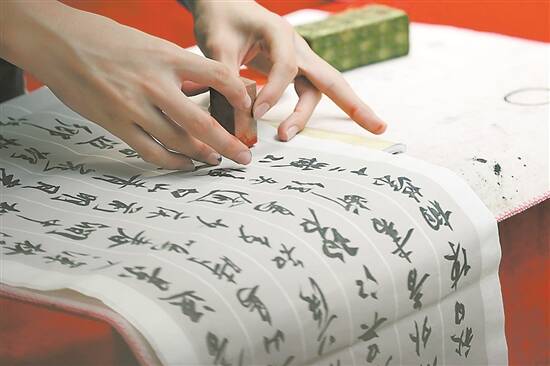 书写完毕,选手庄重地盖上自己的名章