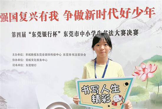 廖翊熹学习书法的七年时间,几乎每天都有在练习,练习书法已经完全融入她的生活,经过日复一日的坚持,廖翊熹终于得以进入“东莞银行杯”书法比赛的决赛。