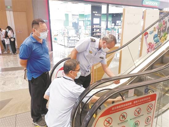 检查组首先检查顺德欢乐海岸PLUS商场内电梯使用情况,现场扫码顺德区电梯共治平台核查自动扶梯近期维保信息,核对特种设备使用标识及检验情况、警示标识的张贴情况等。检查人员针对电梯紧急制动装置同商场管理方进行了深入交流,要求吸取日前深圳商场电梯事故教训,开展自查自纠,确保电梯紧急制动时存在一定缓冲保护,避免制动过快危害游客人身安全。