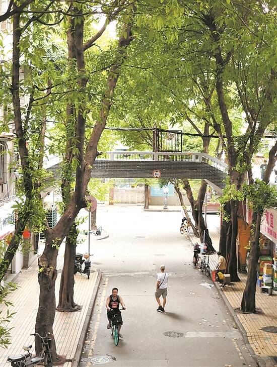 走进五羊邨,很多人会惊讶于这个社区独特的房屋建筑风格:楼层通常以2楼开始算起,楼房与楼房之间有拱桥相连,六个小区被四通八达的二楼平台连接起来,居民就从跨楼拱桥连接的二楼平台往来通行于各条小街,省却了从一楼过马路的麻烦,同时小区的活动空间也得以扩展。这是初建时期借鉴香港屋邨的设计,采用井字形结构,通过拱形桥相连实现四面围合,形似蜂巢,从低处往上看,各栋楼房顶层也像连接在一起,形成井口状,颇有“坐井观天”之感。