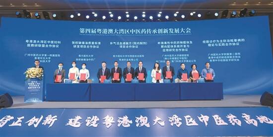 粤港澳三地的多家单位、企业和机构现场签署了4个中医药合作项目、交换了5个合作文本,掀起了新一轮中医药合作发展的热潮。两天的时间里,共进行了14次主旨演讲和以“粤港澳大湾区中医药产学研突破与创新”为主题的圆桌会议,27位领导、专家分别就中医药发展规划、文化传承、科技创新、政策研究、产业布局、标准化建设等,为大湾区中医药高质量发展建言献策。会后,还组织了现场参观。