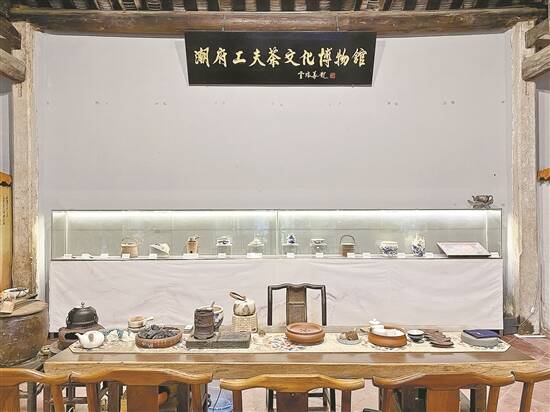 为此,方云帆也不断尝试茶叶的多元探索,潮府工夫茶文化博物馆就是其中之一。据方云帆介绍,该馆是一座老式宗祠改建而成的,收纳400余件与茶有关的藏品,藏品类型以茶器为主,年代从夏商周一直到当代,具象地展示了潮州工夫茶的历史变迁。与此同时,馆内也举行工夫茶品鉴、茶粥品尝、茶话灯谜会、潮剧分享会、潮州歌谣演唱会、汉服茶礼交流会等各类与潮州传统文化相关的活动,还通过开办茶文化公益课堂解读茶器文物,普及茶道知识,传授冲茶技艺。如今,潮府工夫茶文化博物馆是潮州市文化研学游基地、大学生社会实践潮州定点单位,成为高校师生与市民游客深入了解潮州工夫茶的文化场所。