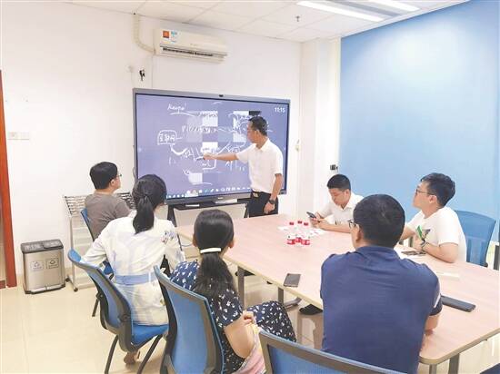 珠海市社会保障(市民)卡管理中心、珠海市人力资源社会保障信息中心团队正在研讨线上学习平台 受访者供图