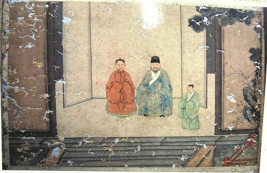韩氏族中珍宝《意中幻肖图》展示了少年函可聆听父亲韩日缵教诲的情形(翻拍)