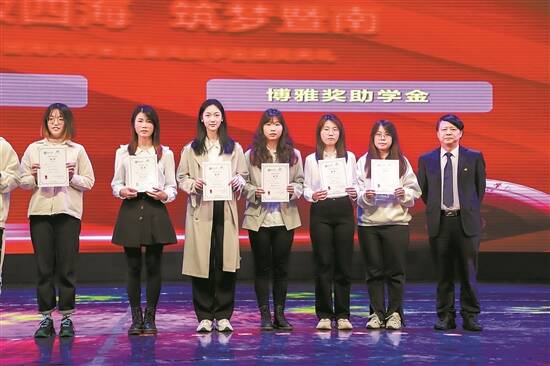 赵茗宇(左三)获得博雅奖助学金