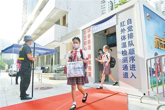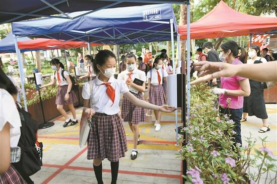 小学生测温、洗手进入校园