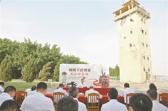 开平市委书记余中华在碉楼下给党员授课 受访者供图