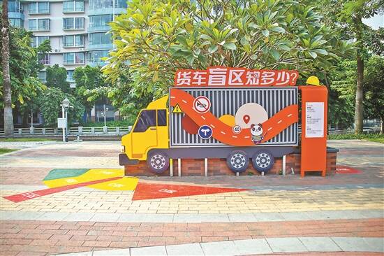 据介绍,石湾街道“交通安全主题公园”是禅城区第二个同类型的主题公园,占地约1.5万平方米,集知识性、趣味性、互动性、体验性于一体。该公园主要由“氛围区”和“互动区”两大板块组成,包括货车盲区体验区、交通标志翻翻墙、道路模拟体验区、主题雕塑、网红打卡亭等8大区域,将最基础必学的交通安全知识融入其中,小小的主题公园立即化身交通安全的户外课堂,生动有趣。