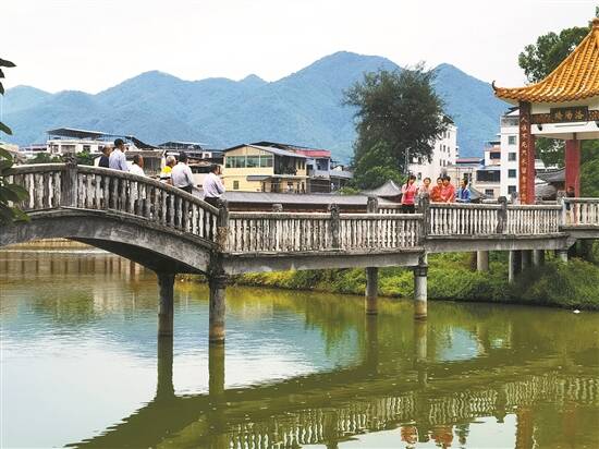 “听歌观众一排排,山歌没卖也没买。今日同妹来对驳,驳到西山日头低……”在松口镇中山公园的洛阳桥上,已耄耋之年的廖胜华在几位老翁的簇拥下,精神矍铄、中气十足地唱着山歌。“驳到西山日头低,你个山歌唔当亻崖(我)”,桥的另一边,同为松口客家山歌区级代表性传承人的温婉香也在几位老媪的陪伴下,用软糯悠扬的曲调,同男人们“驳”起山歌来。