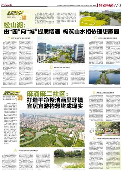 崭新的民居沿着柏油路整齐排列,清澈见底的河涌鱼翔浅底,榕树下孩子们嬉戏玩耍,凉棚边老人们或下象棋、或弹奏古筝,麻二公园里居民们三五成群伴着音乐跳起了舞……金秋时节,走进东莞市麻涌镇麻二社区,岭南水乡村落的安静祥和与精致优雅迎面袭来。让人不免感叹:这就是大家魂牵梦萦的画里圩镇。