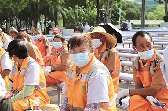 羊城晚报讯 记者秦小辉、通讯员管佳摄影报道:为弘扬环卫工人的无私奉献精神,营造全社会关爱环卫工人的良好风尚,2022年10月25日,由东莞市民政局和东莞市城市管理和综合执法局指导,东莞市慈善会主办的“关爱环卫工,疫期送温暖”项目启动。参与活动的爱心企业向全市近4万名一线环卫工人捐赠爱心购物卡和爱心包,彰显东莞向上向善的文明风尚。