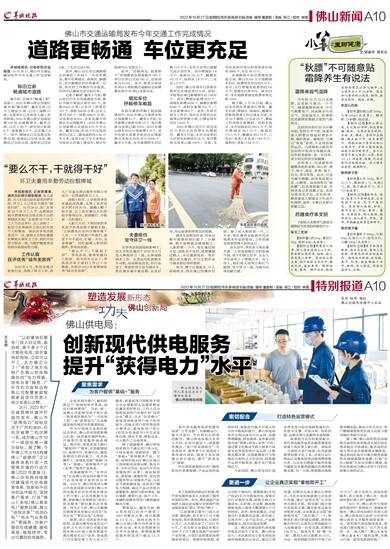 “2021年,佛山获评中国营商环境评价‘获得电力’领域标杆城市。”佛山供电局相关负责人表示,佛山供电局已连续13年获评佛山政府公共服务满意度第一名,“依托现代供电服务体系,供电部门要在服务上‘百尺竿头更进一步’,深入推广‘佛山E来电(佛山易来电)’服务品牌,为佛山打造一流用电营商环境。”