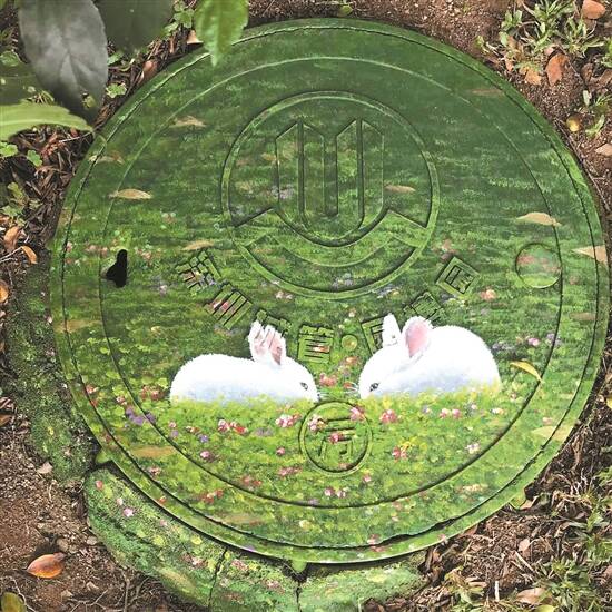 这也是他开启公园创作的初心。第一次创作,他给公园门口一片霉迹斑斑的围墙增添了一些“爬墙植物和小花”,出来的效果让他自己和园方都很满意。李平说:“公园里的创作既要用环保涂料,也要时刻谨记不打扰游客,仅在需要装饰的树桩断面、下水井盖等地方做提醒。”