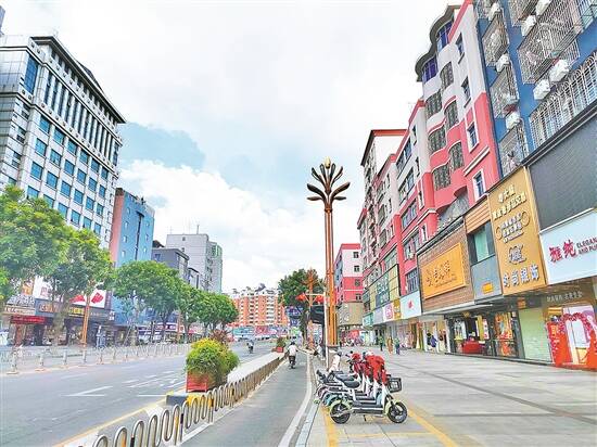数据显示,2021年以来,凤岗镇对金凤凰大道等18条道路设置护栏,实施人行道物理隔离,对14条主要道路建设30.1公里的非机动车道;完成金鹏路等13条人行道的改造升级,改造总长度约57.1公里;实施人行道美化和设施升级项目一批;镇中心区15条主要街道实现“门前三包”工作全覆盖,其余10个村各打造了一条“门前三包”示范街。