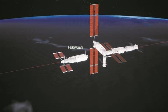 后续,将按计划实施梦天实验舱转位,梦天实验舱将与天和核心舱、问天实验舱形成空间站“T”字基本构型组合体。