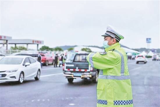 公安干警引导车辆 受访者供图