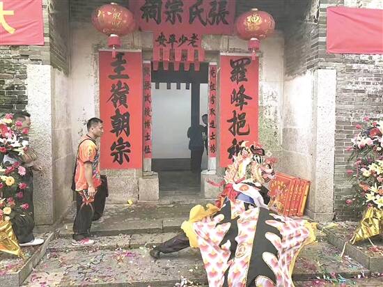 在惠州仲恺高新区陈江街道张屋村,每逢婚礼、祠堂入伙等喜庆日子,陈江张屋龙形麒麟队都会参拜祝贺。