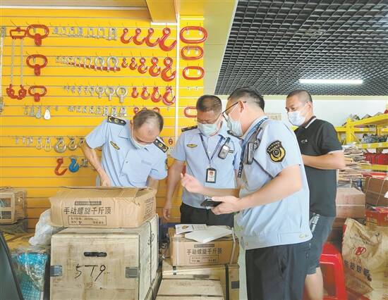 2022年8月2日,佛山市市场监督管理局执法人员根据投诉对佛山市龙某起重机械有限公司涉嫌销售侵犯“沪工”注册商标专用权的电动葫芦等产品的违法行为进行立案调查。执法人员联合佛山市南海丹灶派出所对当事人的经营场所实施现场检查,并对现场涉嫌侵犯注册商标专用权的商品(环链电动提升机439台)以及冒用他人厂名的商品(永磁起重器39台)采取扣押的行政强制措施。