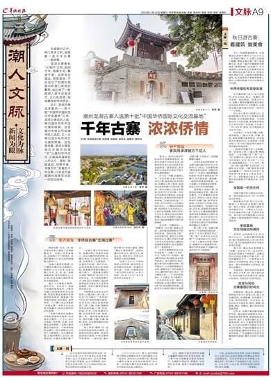 近日,龙湖古寨迎来喜讯——第十批“中国华侨国际文化交流基地”公布,龙湖古寨成功入选,捧回国字号华侨文化基地牌匾。这是潮州市继去年砚峰书院入选后,又一次捧回国字号华侨文化基地牌匾。这也意味着,龙湖古寨其背后所蕴含的潮“侨”元素和华侨文化,正被越来越多的人所认可。素有“潮居典范、祠第千家、书香万代”美誉的千年古寨,日渐成为展现潮州深厚文化的一块生动招牌。