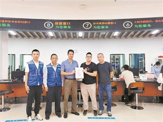 三乡镇副镇长洪永仲(中)为企业颁发告知承诺制环评批复